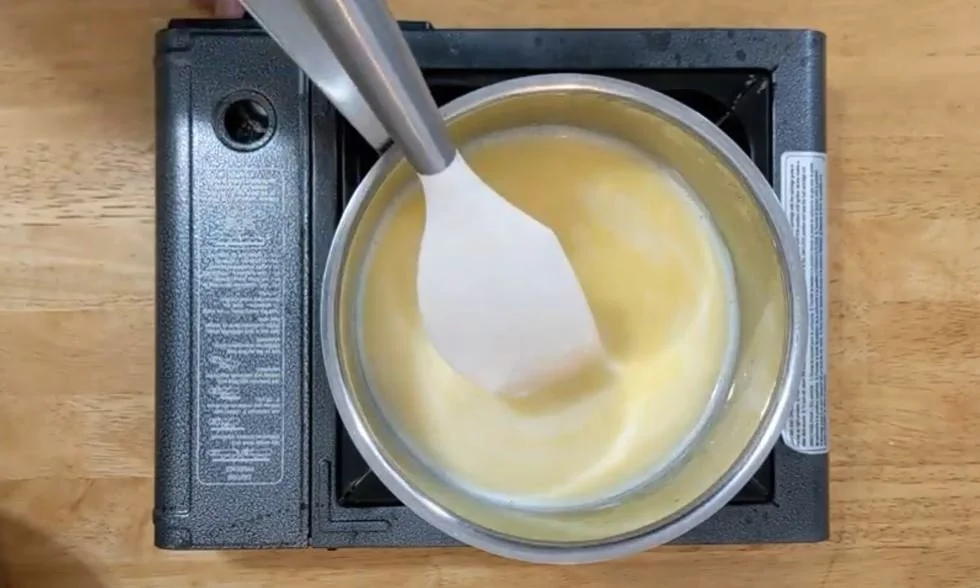1. In a sauce pot, add the water/milk, the salt and the butter. On medium heat, bring to a boil.