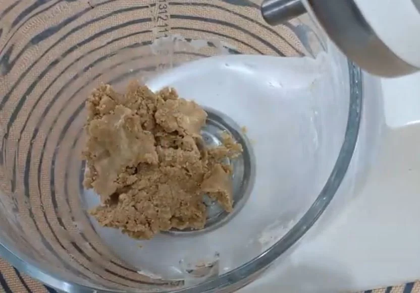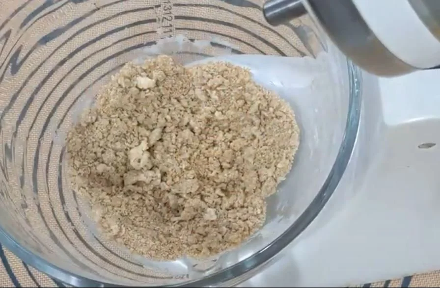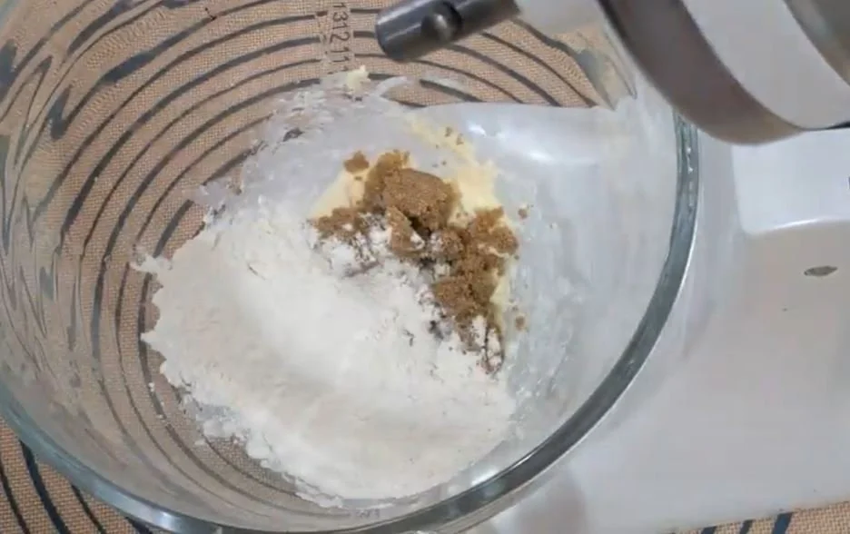 3.Mix until the flour and the brown sugar covers the butter, making nice golden brown nuggets.