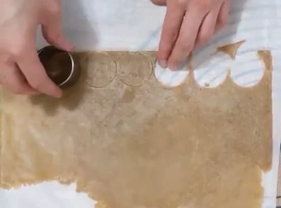 7. With your cookie cutter, cut holes in the dough. They should a tiny bit bigger than your raw choux. .